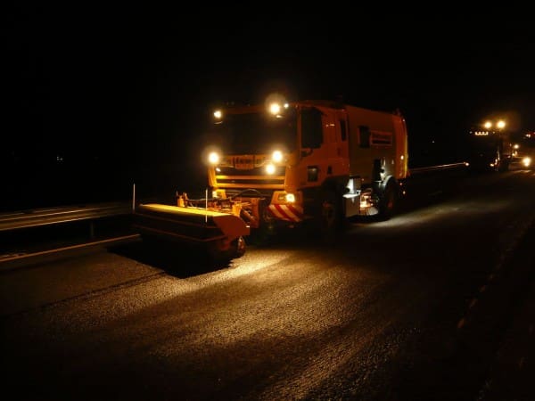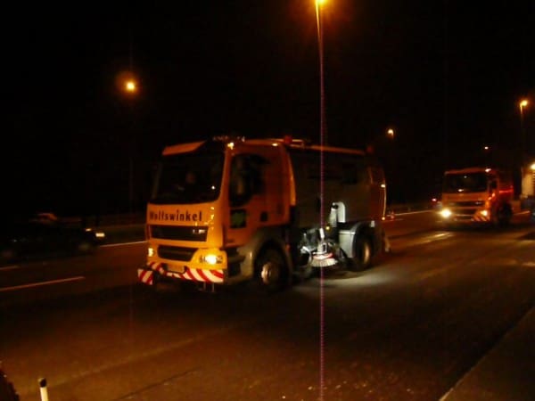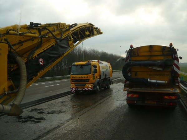 Twee jaar eerder dan oorspronkelijk gepland is maandagochtend 7 mei de nieuwe, extra rijstrook op de A12 tussen Gouda en Woerden in gebruik genomen. In de nacht van zondag op maandag zijn de laatste werkzaamheden verricht. Met de extra rijstrook zijn er nu vier rijstroken beschikbaar van Gouda naar Utrecht. Hierdoor zijn weggebruikers in de ochtend en avondspits op dit traject gemiddeld 8 minuten sneller. Afgelopen weekend was de laatste fase van het frezen en asfalteren van de A12 ter hoogte van Woerden. Vanuit Maarsbergen reden we in colonne richting Gouda, machines van klein tot groot met rolbezems en natuurlijk de wegdekreinigers met waterwagens. De veegmachines hebben alles geveegd na het asfaltfrezen, en daarna kwamen de wegdekreinigers in actie om het totale oppervlak te reinigen voor asfalt uit, De lat ligt hoog, omdat het totale werkvak op maandagmorgen om 05.00 uur weer open moet zijn.