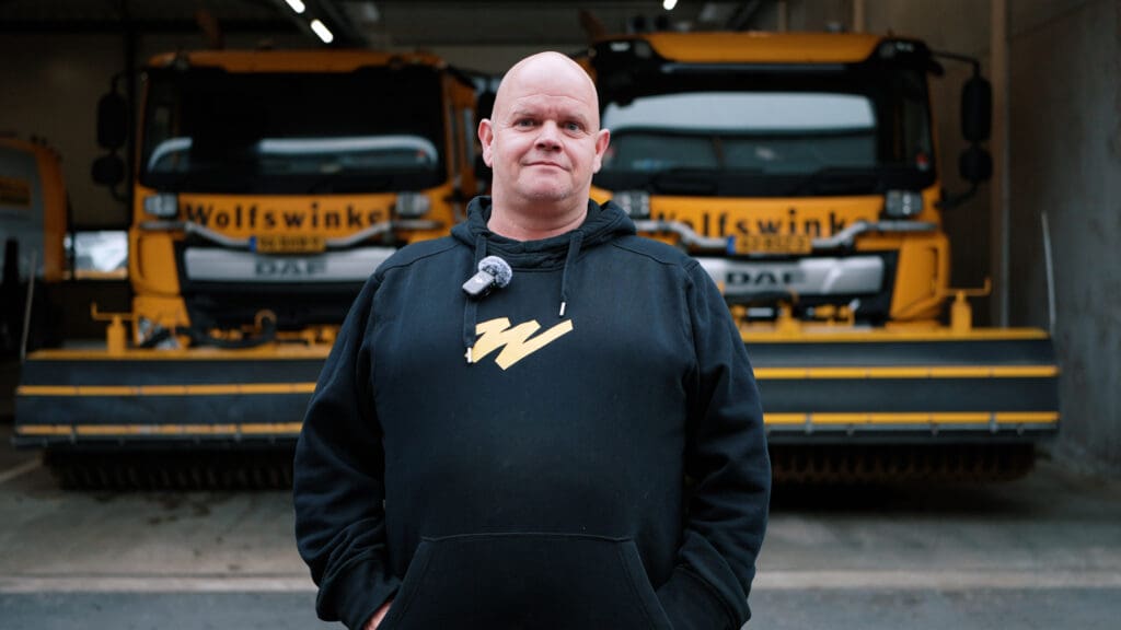 Daan Petersen werkt inmiddels zo’n vijftien jaar bij Wolfswinkel Infra en kent het werk op de weg als geen ander. Als chauffeur én mentorchauffeur begeleidt hij nieuwe collega’s en juist daarom is zijn rol binnen het veiligheidsprogramma hein & guus een logische. Samen met een klein groepje collega’s volgt hij de trainingen, met als doel om de inzichten vervolgens verder te verspreiden binnen de organisatie. “Doordat we het met een kleinere groep doen, kun je meer aandacht geven aan de verschillende thema’s en inhoud. Daarna neem je het mee de praktijk in, richting collega’s. Dat werkt beter dan alles in één keer bij een grote groep neerleggen.”
